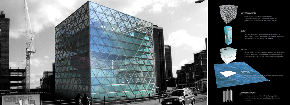 Entwurfskonzept: Rotierendes L´s um einen massiven skulpturalen